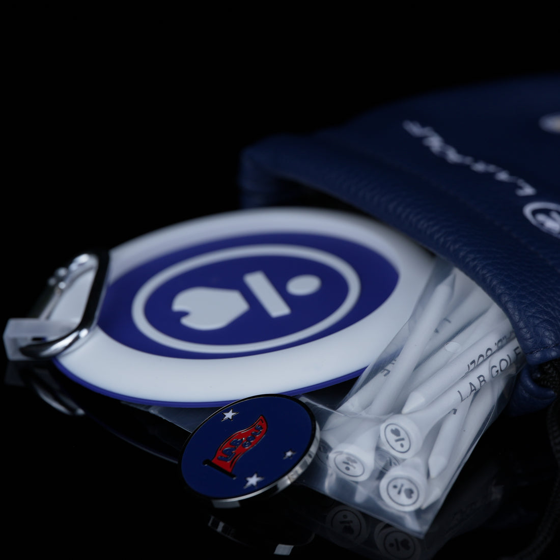 The Pew Pals Tee Kit includes 10 branded tees, our portable putting disc, a PU drawstring pouch inspired by the Church Pews at Oakmont, and a limited-edition ball marker — all Oakmont-squirrel approved and L.A.B. Rat certified.
